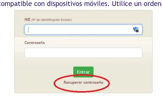 Todo el alumnado matriculado en el centro en este curso pasado ya tiene el NIE y la contraseña. No obstante, en el correo que recibirán para completar la matrícula, se les recordará el NIE. En caso de no recordar la contraseña, pueden generar una nueva en el enlace «Recuperar Contraseña» en la pantalla de acceso, y la recibirán en la dirección de correo electrónico que facilitaron al acceder por primera vez al Registro Online.